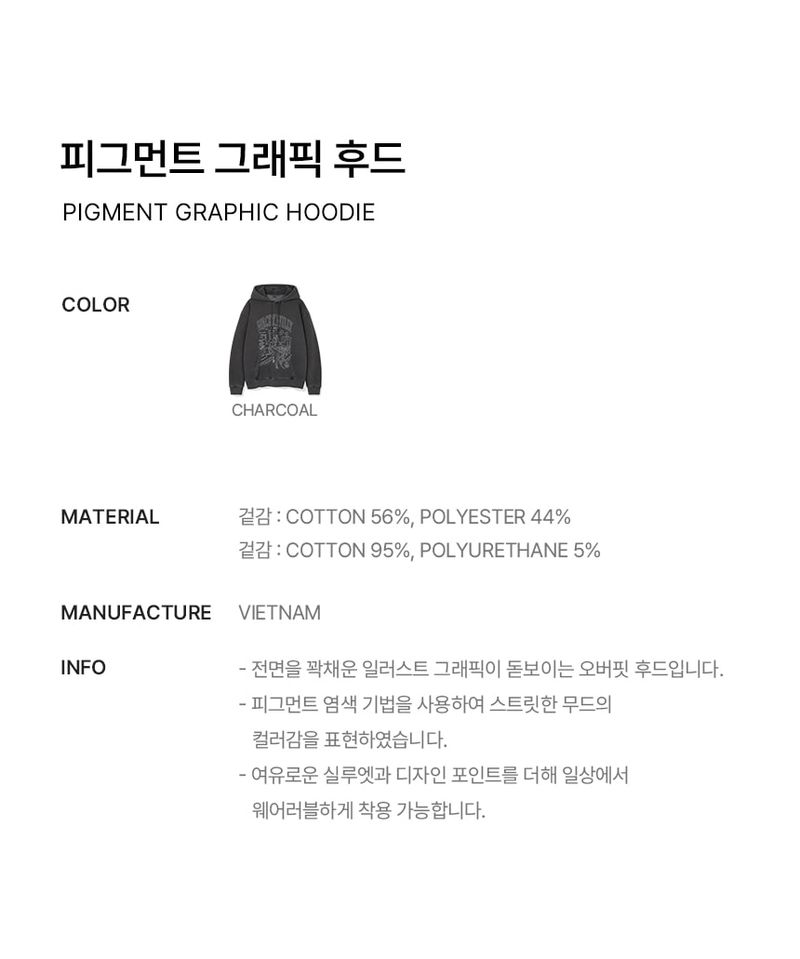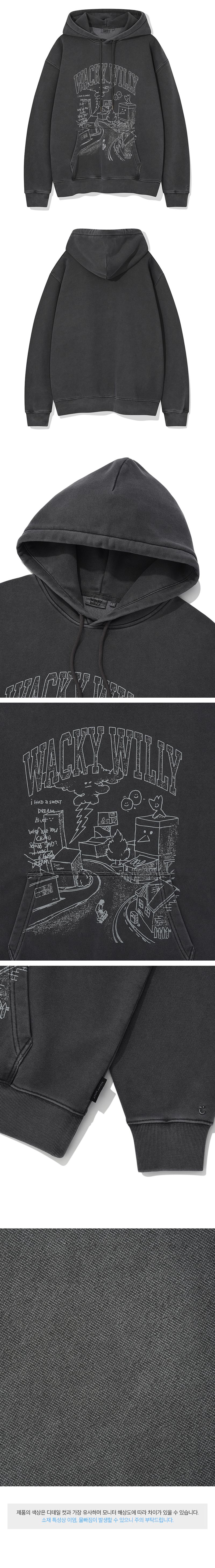 韓國直送 WACKY WILLY - Pigment Graphic Hood Charcoal
